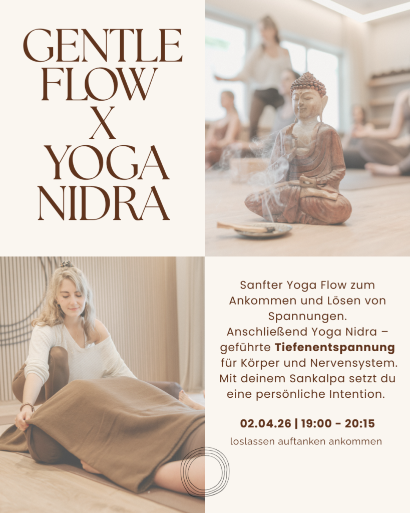 In dieser Session beginnen wir mit einem sanften Yoga Flow, der den Körper behutsam mobilisiert, Spannungen löst und dich langsam aus dem Alltag ankommen lässt.